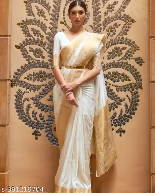 Name : Classic White And Gold Kanjivaram Soft Weaving Silk With Beautiful Rich Pallu & Blouse for Wedding Festive Wear Ethnic Sari